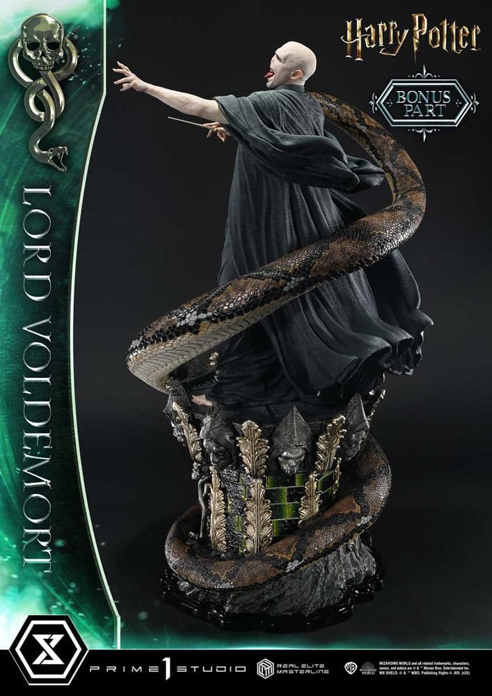 Η φιγούρα δημιουργήθηκε από τη Prime 1 Studio και ανήκει στη κορυφαία σειρά Real Elite Masterline, η οποία προσφέρει εξαιρετική ποιότητα γλυπτικής και ρεαλισμού. Ο Voldemort αποδίδεται με την χαρακτηριστική του εμφάνιση, το φίδι Nagini και μια σκοτεινή, θεματική βάση που αναδεικνύει την ατμόσφαιρα του Wizarding World.